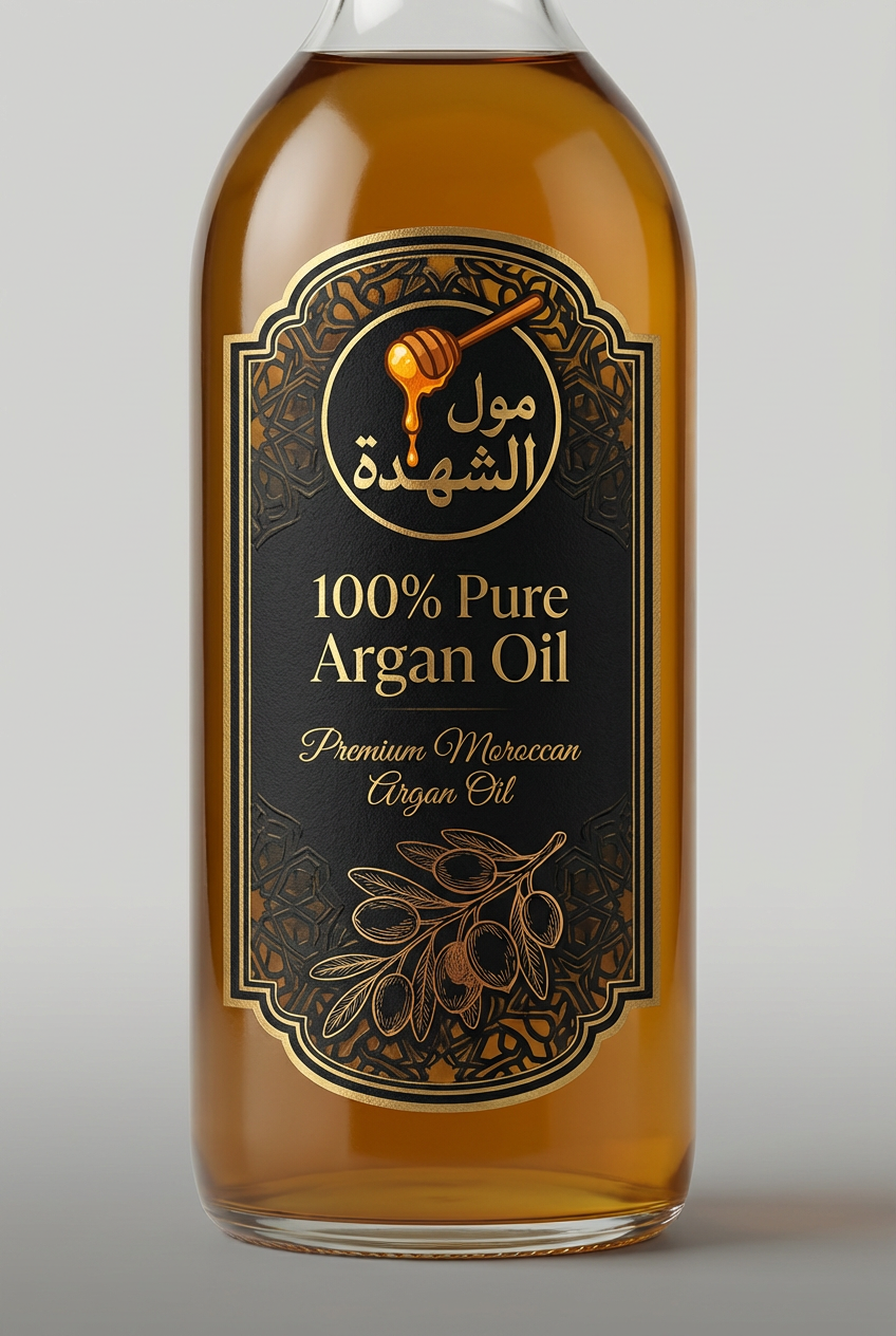 زيت أرغان غذائي طبيعي 100%، مستخلص من حبات الأرغان المختارة بعناية والمحمصة بطريقة تقليدية للحفاظ على مذاقه الأصيل وقيمته الغذائية. يُعبأ في قنينة زجاجية أنيقة بسعة 500 مل للمحافظة على الجودة والنكهة الطبيعية.